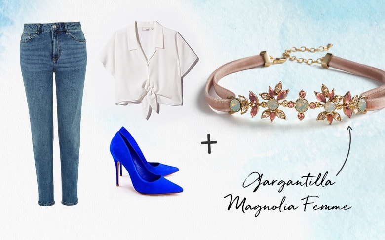 Finalmente, si llevas un top cuello bandeja lo ideal será la gargantilla Magnolia Femme que le dará al look casual el toque de feminidad y seguridad que no le falta a la mujer Arty Femme.